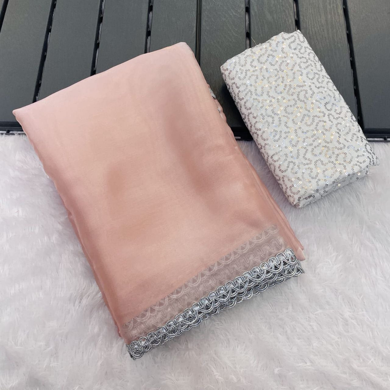 *Saree Fabric* : 🌹Jimmy choo with fency silver lace🌹